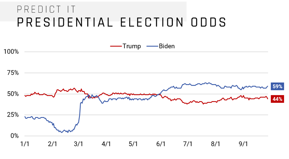 Depending on who you ask, “it’s already priced in” may be the least helpful phrase in finance. Our friend Barry Ritholtz recently wrote a piece for Bloomberg titled, “The 10 Most Useless Phrases in Financial Markets” and the ninth most useless phrase was “it is already in the price.” When is the phrase used? When big news hits the wires and has a little noticeable impact on the underlying components. The phrase can be used with accuracy and utility. However, it is usually deployed by analysts and media outlets as a different way of saying “markets are efficient.” Surprises are not “priced in.” However, common knowledge is certainly “already in the price.” Over the weekend, the New York Times posted an article revealing the tax status of President Trump. For years, his political opposition has shown tremendous effort to find and bring light to these documents. Therefore, a lot of people would consider that big news. The betting market, while not the most efficient but as honest as any place that you can gauge the odds of a presidential race, did not consider the NYT story to be big news. As the chart below shows, it had minimal impact. “It’s already priced in.”